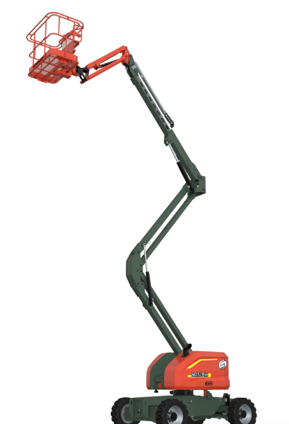 Diesel articulating boom lifts with flexible outreach, strong traction, ideal for complex outdoor and rough terrain jobs.