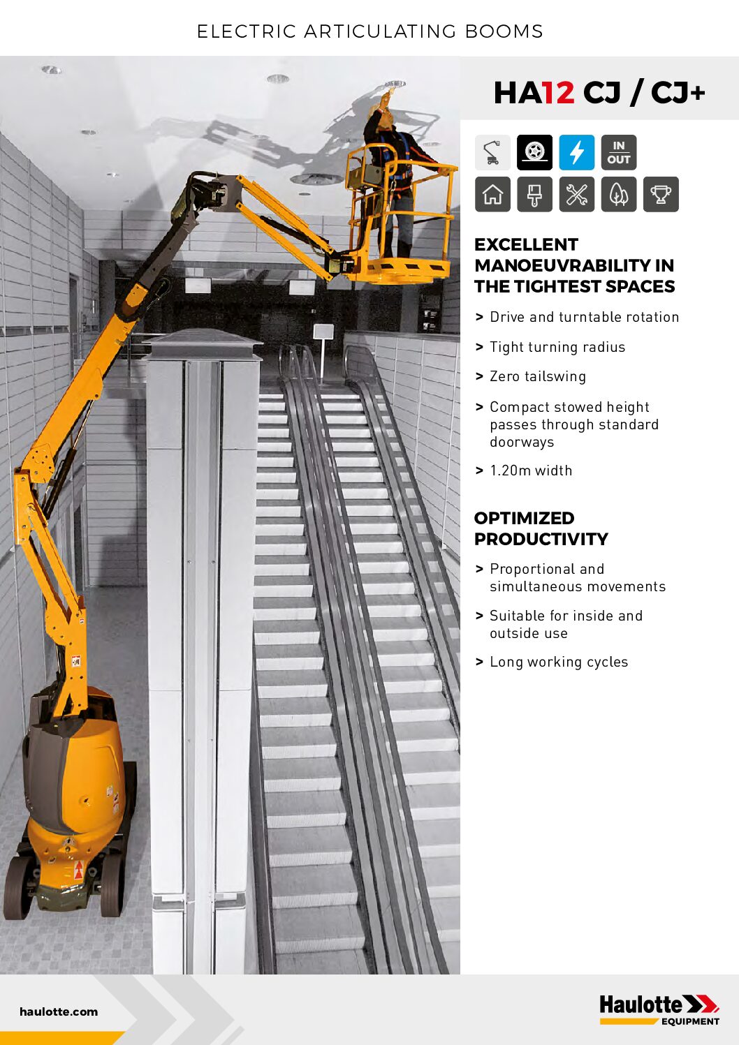 The HA12 CJ also delivers one of the best horizontal offsets on the market, allowing operators to easily reach work areas that would otherwise be difficult to access, while ensuring safe and efficient operation.