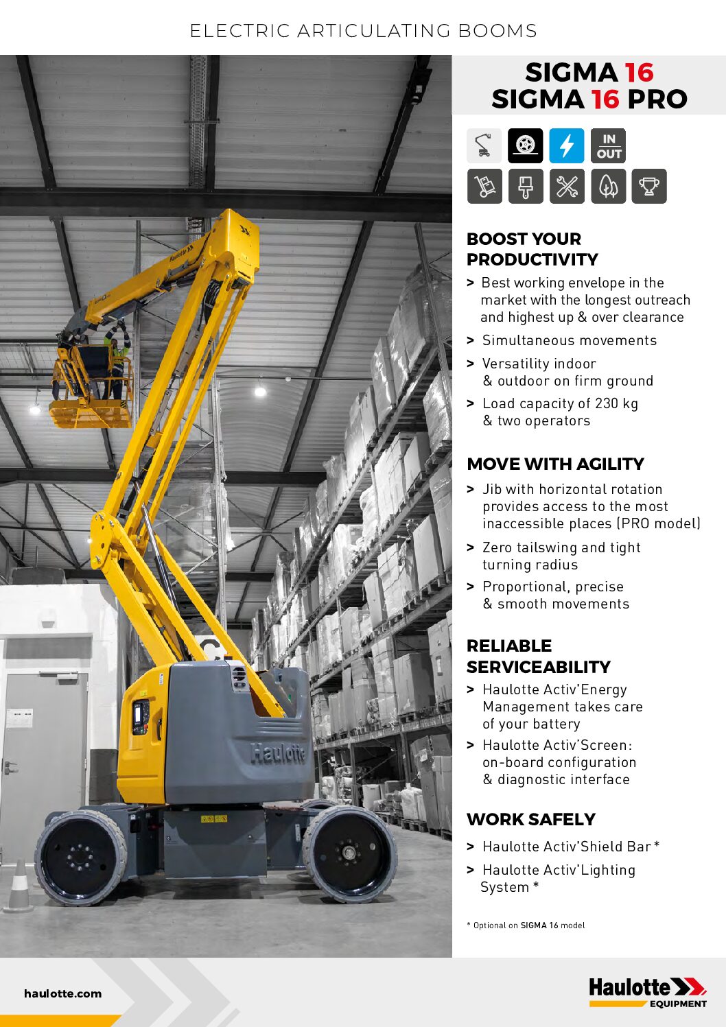 With its super-fast lift and the ability to perform simultaneous movements (up to two at a time), the SIGMA 16 ensures maximum efficiency on the jobsite.