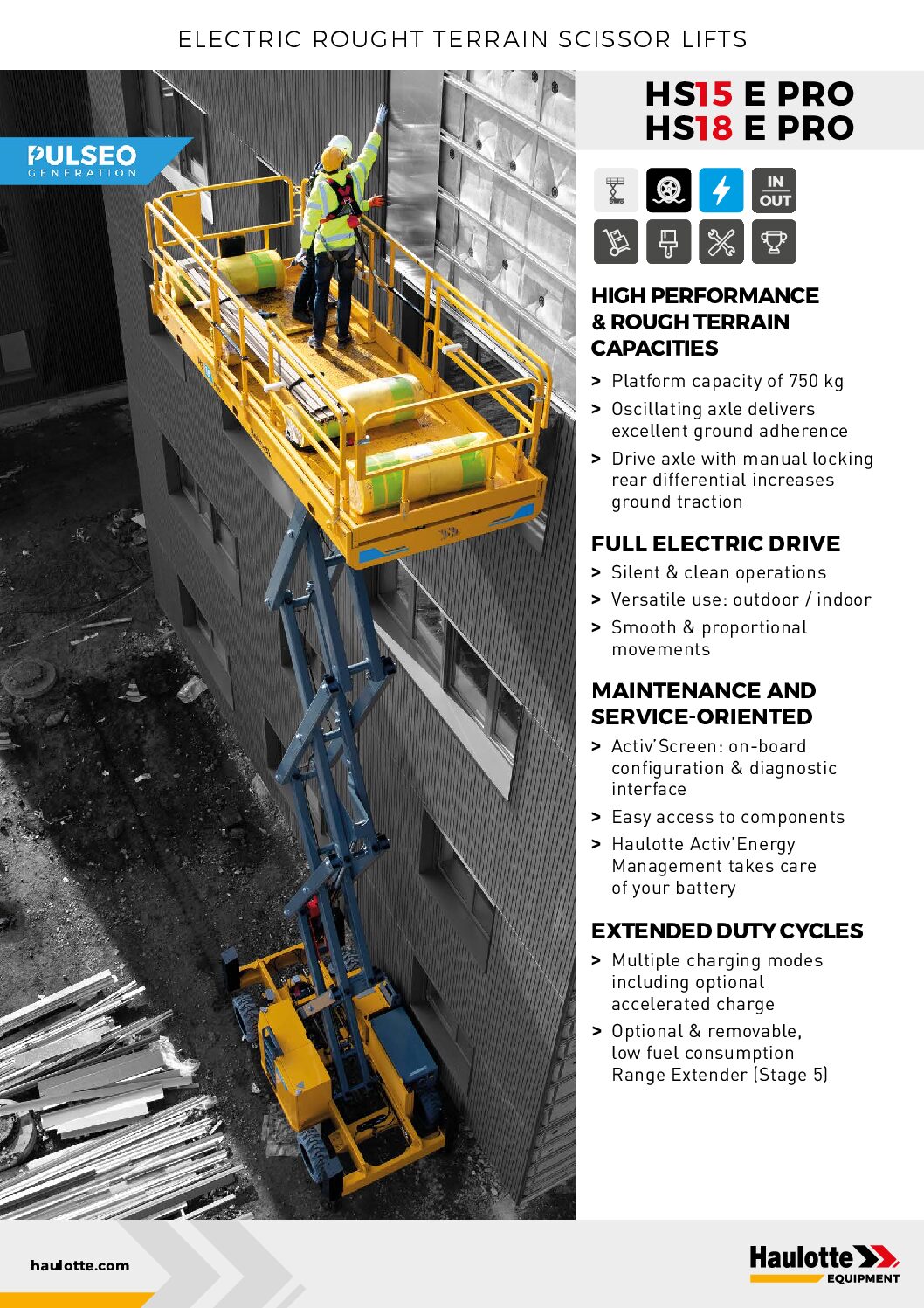 The new PULSEO series scissor lifts are revolutionizing the aerial work platform industry. With a fully electric architecture, they deliver the same outstanding drive performance as a traditional internal combustion diesel machine, while offering the benefits of silent, eco-friendly, zero-emission operation.