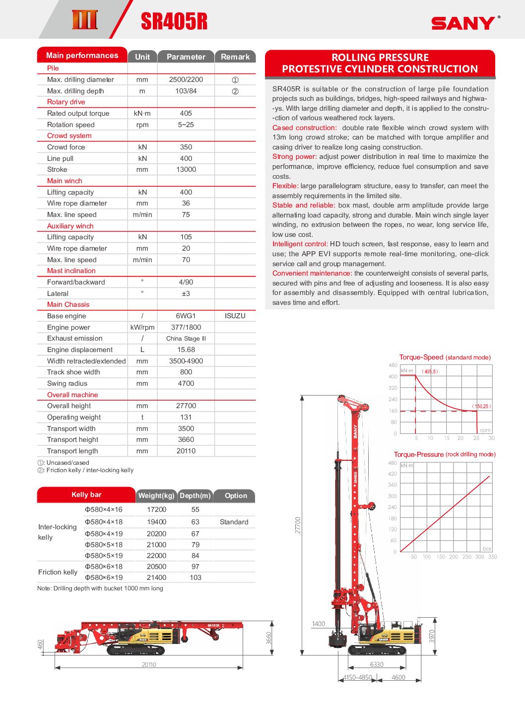 Sany W10 Rotary Drilling Rig SR405R-W10